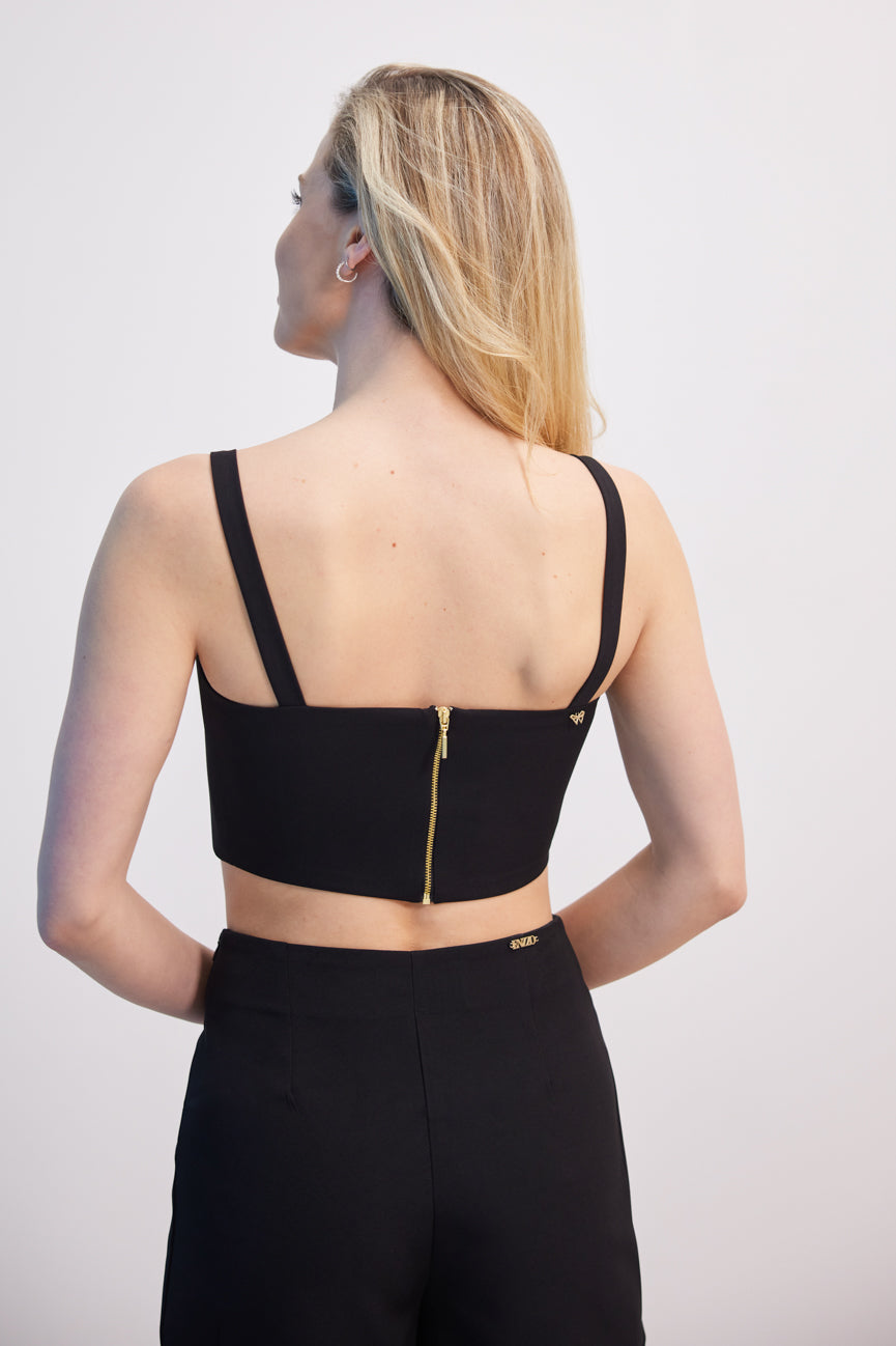 Gold zipper on the back.